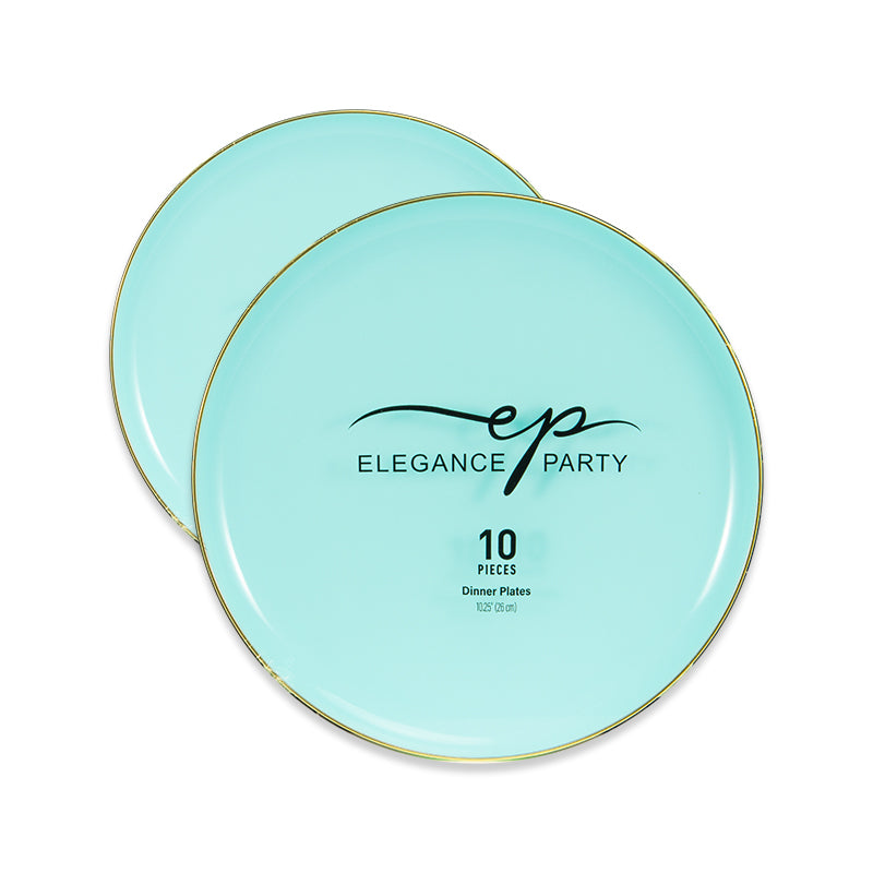 10.25" Dinner Plates – 120 Count (12 Packs of 10) – Mint with Elegant Gold/Silver Rim